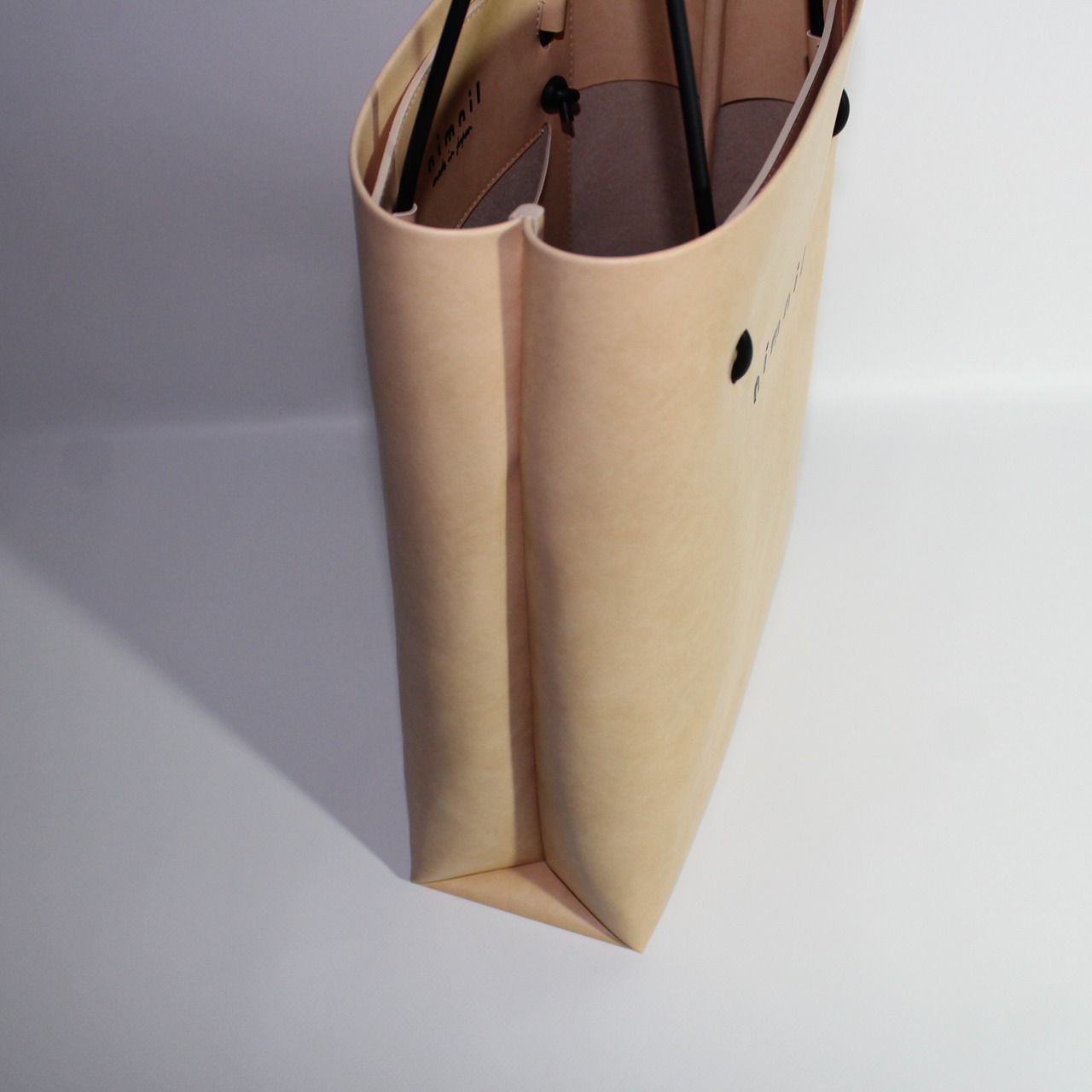 一口に革製品と言っても、表面をポリウレタンや顔料で加工しているものが多く、それらと同等の耐久年数と強度、質感を備えながら、ケアや管理の手軽さと軽さ、製造過程で端材が出にくいエコロジカルな観点からnimnilでは人工皮革に着目しました。