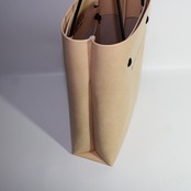 極端なシンプルさとシルエットが印象的な普遍的デザインのトートバッグ。
