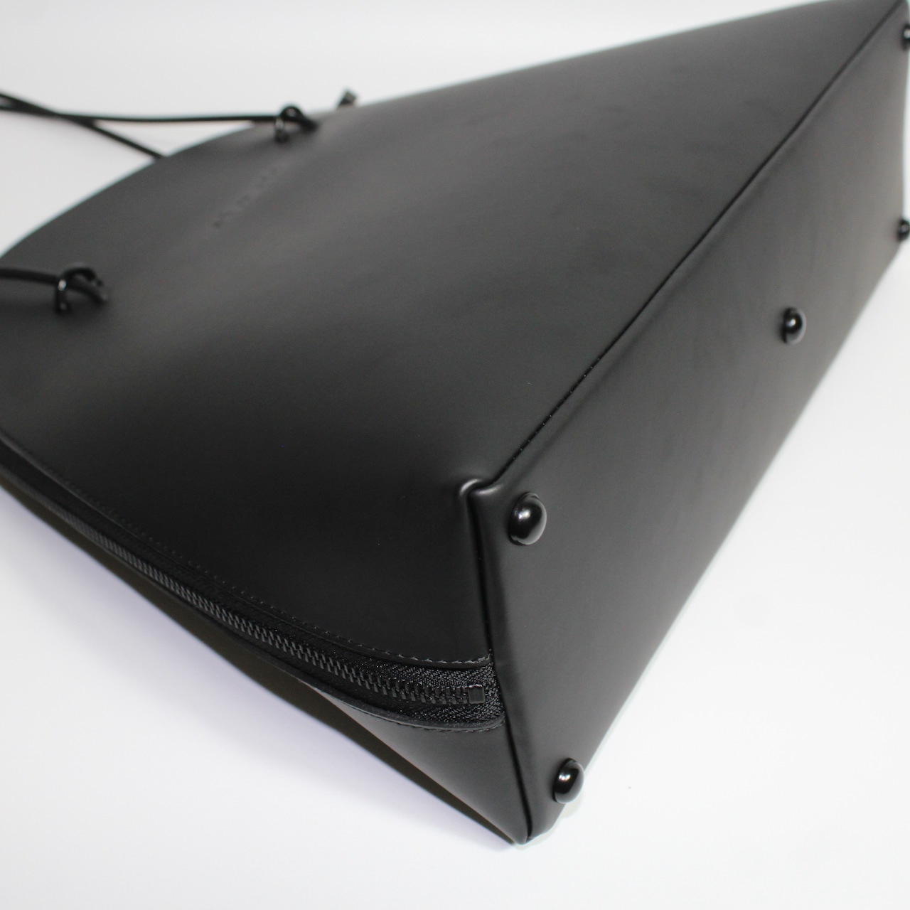 使いやすいラウンドジップとミニマルなデザインが印象的なトートバッグ。
