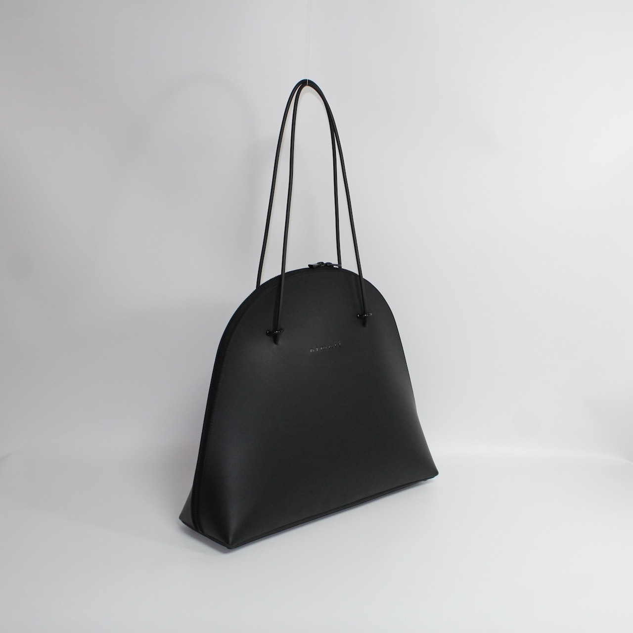 A minimalist tote bag defined by its smooth round-zip closure and clean, structured silhouette.